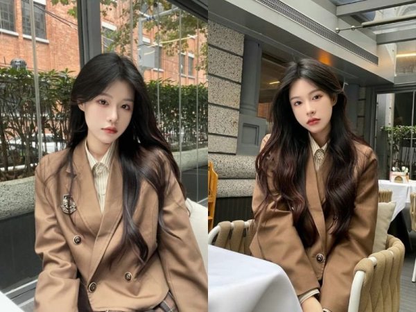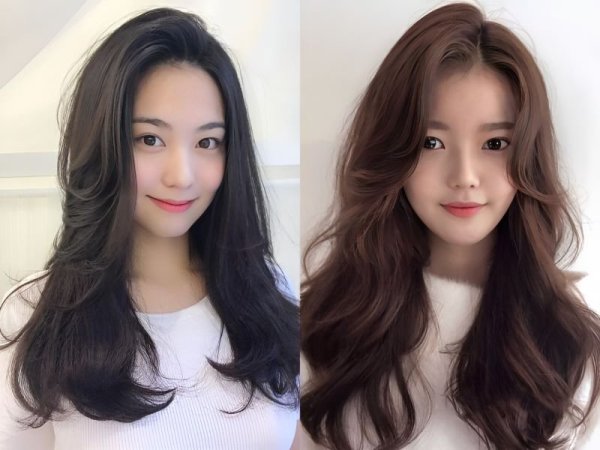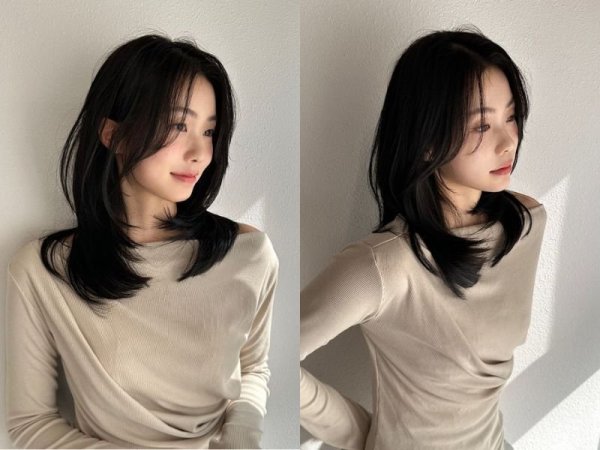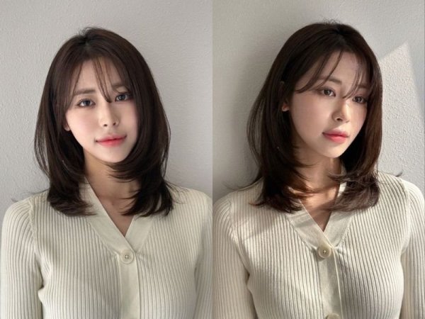 Tóc mái bay layer kết hợp màu nhuộm trung tính làm tôn lên phần da trắng sáng (Nguồn: kbeautyaddiction)Kiểu tóc layer mái bay cho mặt vuông