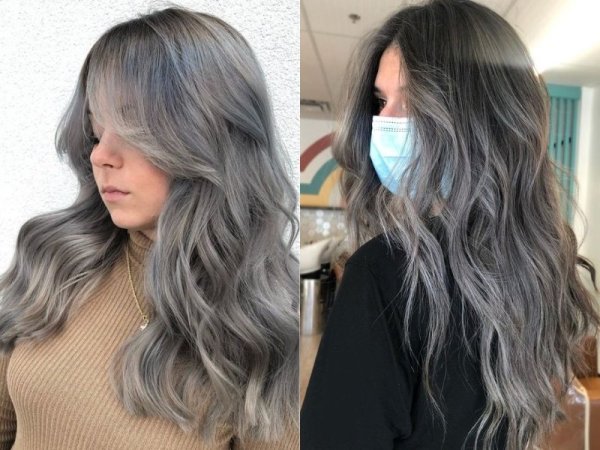 Nhuộm tóc màu than chì khói cực kỳ trendy và sành điệu (Nguồn: wellahair – Pinterest) Màu tóc than chì khói kết hợp uốn xoăn sẽ tôn lên vẻ sang trọng, quý phái cho bạn nữ (Nguồn: colorpsychology – Pinterest)Tóc màu than chì ánh rêu
