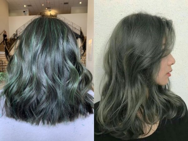 Màu tóc than chì ánh rêu cực tươi trẻ, mới mẻ mà bạn nên thử ngay (Nguồn: Ceebeees – Pinterest) Màu tóc này phù hợp với những bạn nữ có phong cách tối giản, trẻ trung (Nguồn: latesthair – Pinterest, bespecialteam – Pinterest)Tóc than chì ombre