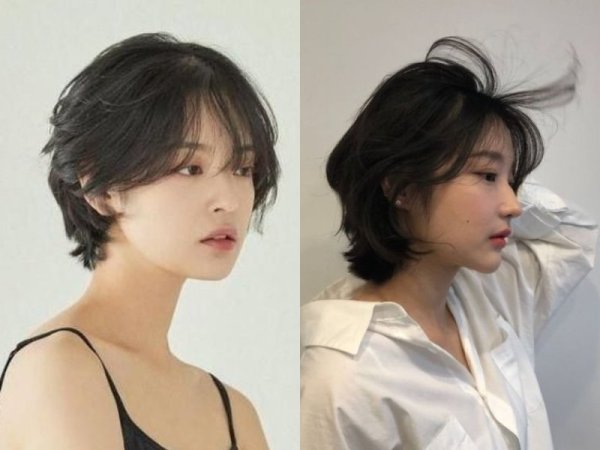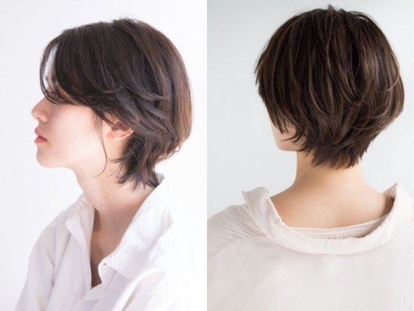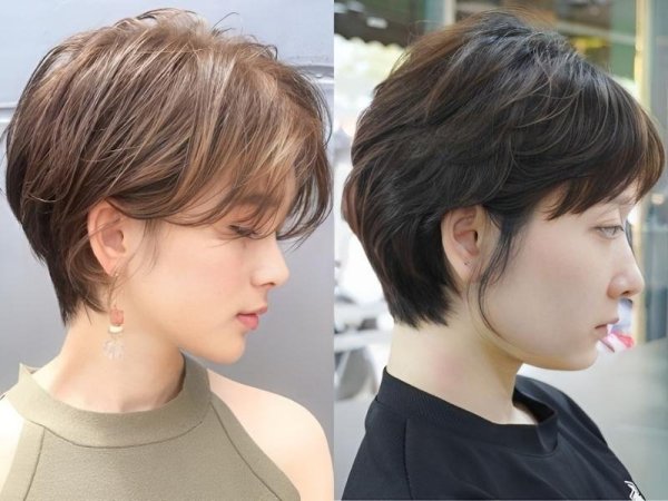 Tóc ngắn tỉa tầng là kiểu tóc được tỉa layer theo từng lớp từ trên xuống, ôm sát gáy và tạo thành nhiều tầng tóc xếp chồng lên nhau. Nhờ độ phồng và ôm sát của phần tóc hai bên sẽ giúp che đi xương hàm, làm mặt thanh thoát. Bạn có thể để mái dài tỉa xéo, mái thưa để che bớt vầng trán rộng và giúp ngũ quan hài hòa hơn.