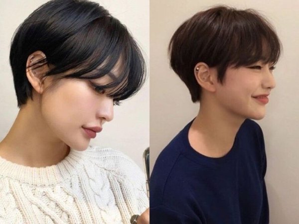 Tóc tém ngang cằm là kiểu tóc rất thích hợp với những cô nàng mặt vuông (Nguồn: Elle & Allkpop – Pinterest) Kiểu tóc này phù hợp cho các bạn nữ mặt vuông góc cạnh (Nguồn: Ay_ – Pinterest)Tóc tém uốn cụp cho mặt vuông