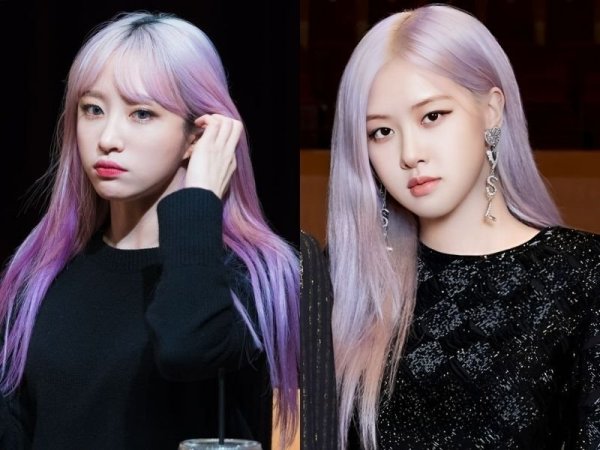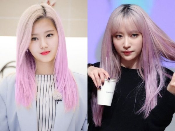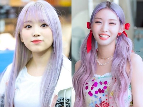 Tóc màu tím nhạt giúp nàng nổi bật và rạng rỡ hơn (Nguồn: Nako – Pinterest, Chungha – Pinterest)