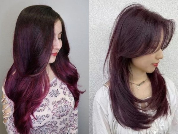 Sắc tím huyền bí kết hợp cùng sắc đỏ rực rỡ sẽ tạo nên một màu tóc tím đỏ có sức hút vô cùng cá tính và mãnh liệt cho phái nữ. Màu tóc này là sự lựa chọn hoàn hảo cho những cô nàng có phong cách quyến rũ và trưởng thành. Sở hữu mái tóc màu tím đỏ giúp tôn lên vẻ đẹp sang chảnh nhưng cũng không kém phần trong trẻo cho các chị em.