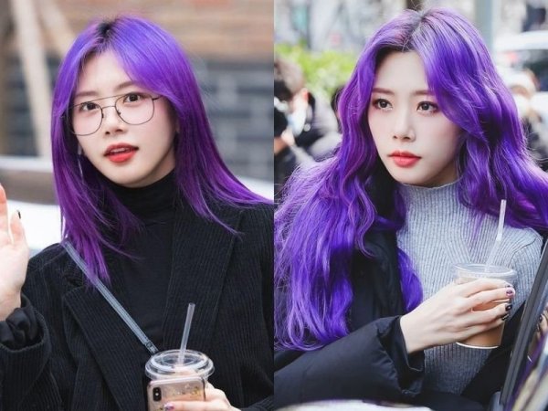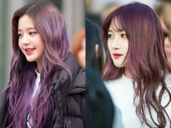 Tóc màu tím ánh nâu quyến rũ và yêu kiều (Nguồn: Wonyong – Pinterest, Siyeon – Pinterest)