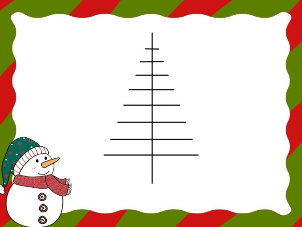Vẽ trang trí cây thông noel với các đường kẻ ngang là một cách vẽ cực kỳ đơn giản và sáng tạo. Với những đường kẻ ngang có độ dài khác nhau được sắp xếp theo thứ trên thân cây hình chữ nhật được vẽ từ đầu. Bạn sẽ dễ dàng tạo ra một cây thông Noel cùng bé mà không cần phải khéo léo hay có nhiều hoa tay với cách vẽ cây thông đơn giản này.