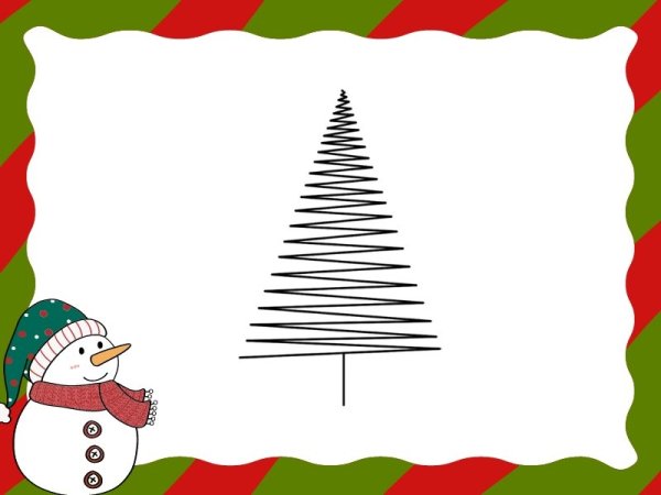 Bạn sẽ sử dụng những nét vẽ ziczac theo chiều ngang (giống đám cỏ) để vẽ cây thông. Bạn cần chú ý vẽ các nét ziczac đều nhau và to dần theo chiều từ trên xuống để tạo một cây thông đẹp mắt hơn. Cuối cùng, hãy vẽ thêm một gốc cây hình chữ nhật và tô màu cây thông Noel là đã hoàn thành.