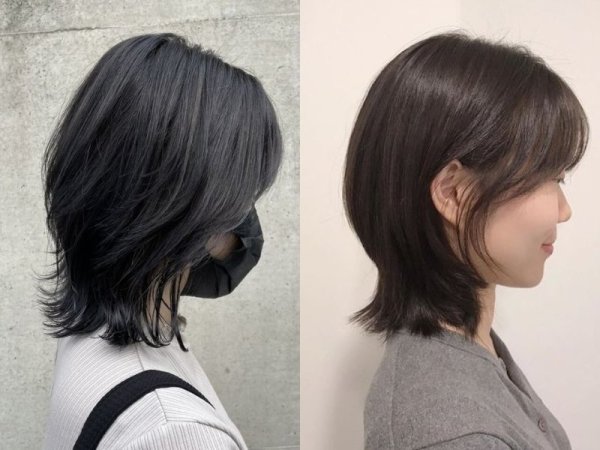 Tóc ngắn layer ngang vai mullet kiểu Hàn Quốc cá tính, cool ngầu (Nguồn: isobel_antle789 – Pinterest, kyokva – Pinterest) Phần đuôi tóc qua gáy là điểm nhấn của kiểu tóc này (Nguồn: hmstore.vn, Lesol Record – Pinterest)Tóc bob tỉa layer Hàn Quốc ôm gáy kiểu búp bê