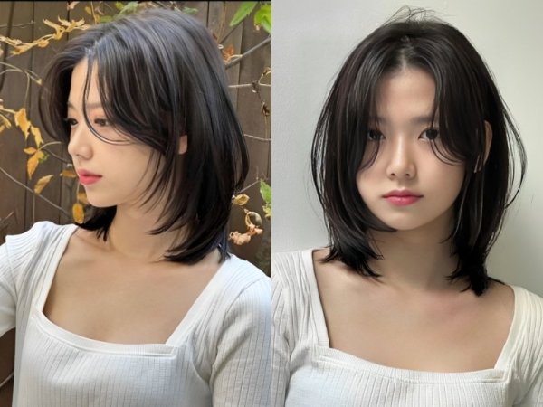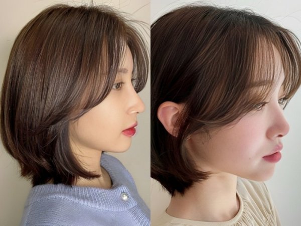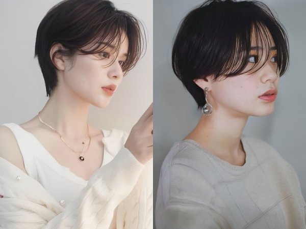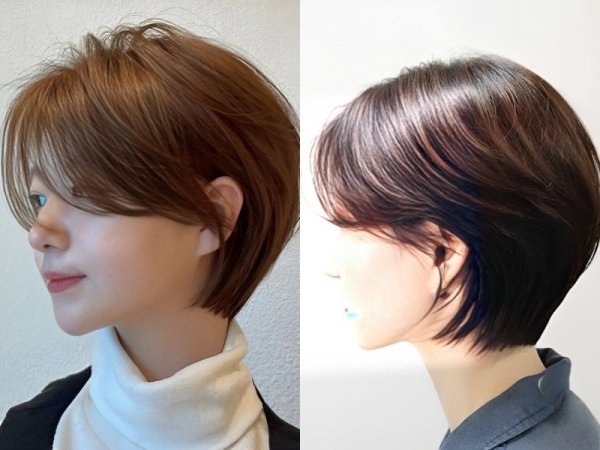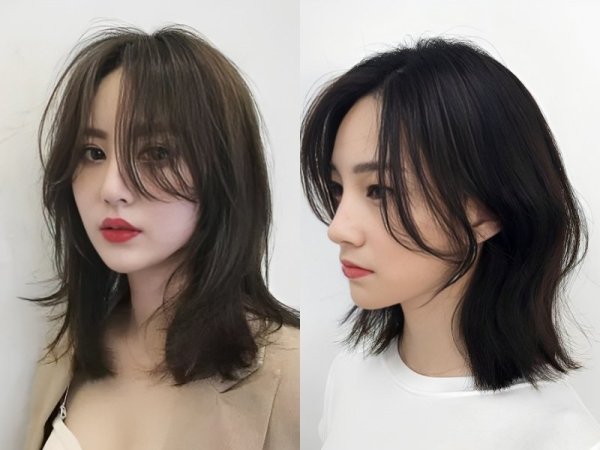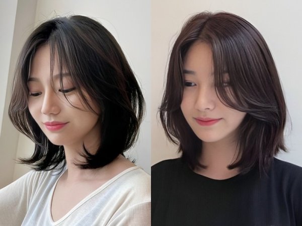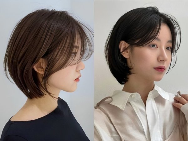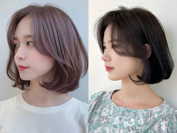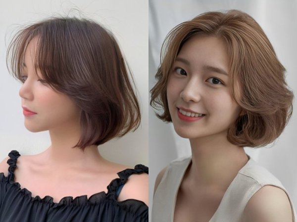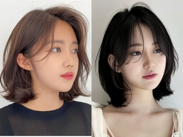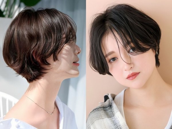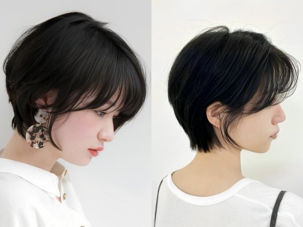 Đặc điểm của tóc ngắn mái bay cho mặt tròn (Nguồn: Khangun Seolhee Salon, Chahong)Kiểu tóc ngắn mái bay cho mặt dài