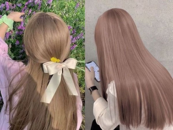Nâu trà sữa ánh hồng ngoài màu đen, màu be sáng còn có sự hòa quyện của màu hồng. Màu tóc này đặc biệt phù hợp với các bạn da trắng sáng hoặc trắng hồng. Nâu trà sữa ánh hồng góp phần tạo nên khí chất tiểu thư, kiêu kỳ nhưng cũng vô cùng nữ tính và ngọt ngào. Các bạn sẽ dễ dàng phối màu tóc này với trang phục có kiểu dáng thướt tha, điệu đà cũng như phụ kiện, trang sức ánh vàng hoặc ánh bạc.