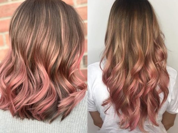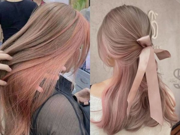 Tóc nâu trà sữa phối hồng hai lớp giúp bạn biến đổi diện mạo nhanh chóng (Nguồn: hairstylecamp.com, graybill12jg – Pinterest) Bạn có thể thỏa mãn đam mê nhuộm hồng sáng với kỹ thuật nhuộm này (Nguồn: lucidsque – Pinterest, Kpopping)Tóc nâu trà sữa ánh cam