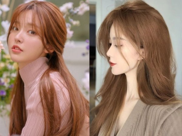 Tóc nâu trà sữa rêu đậm giúp bạn trắng phát sáng (Nguồn: voh.com.vn) Tóc nâu trà sữa rêu không kén màu son (Nguồn: wnaxc_ – Pinterest, kwakfltrs – Pinterest)Tóc nâu trà sữa ánh đồng