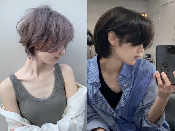 Kiểu tóc mullet nữ tomboy rẽ ngôi 7-3 sành điệu (Nguồn: Chahong, ACE Factory) Tóc mullet tomboy ngắn ngôi 7-3 (Nguồn: Seoul Academy, dongphucdaiphat.com)Kiểu tóc tomboy mullet side part