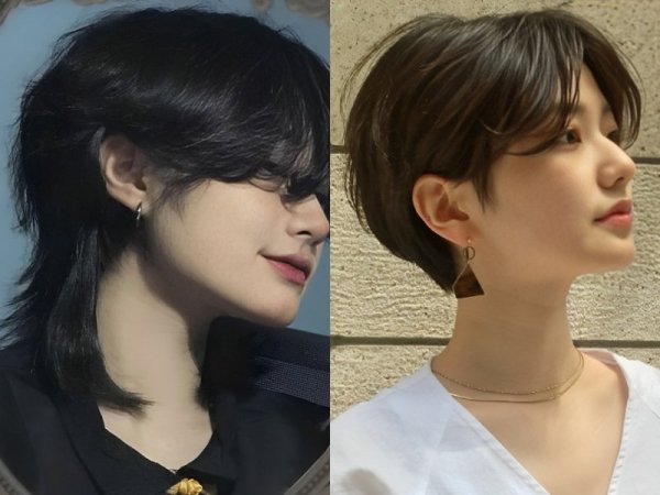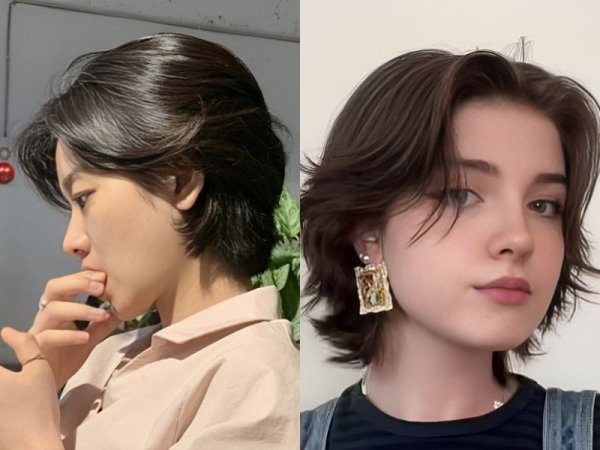 Tóc tomboy mullet cho mặt tròn (Nguồn: ACE Factory, Ahha Cochna – Pinterest)Kiểu tóc mullet tomboy cho mặt dài