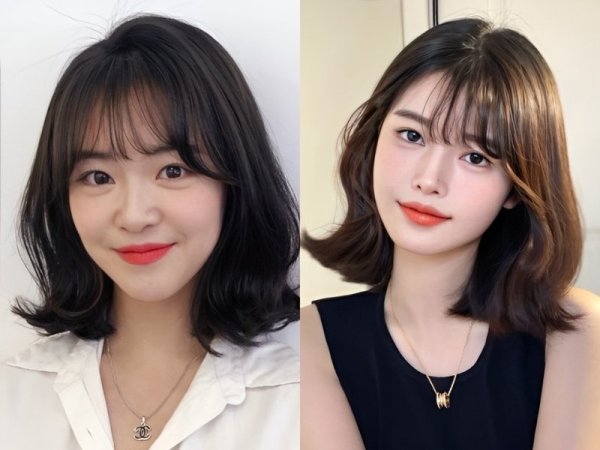 Kiểu tóc ngắn uốn đuôi nhẹ Hàn Quốc giúp gương mặt bầu bĩnh và mềm mại hơn (Nguồn: alicezhabel – Pinterest, HAUM – Pinterest) Tóc bob ngắn uốn đuôi kết hợp uốn xoăn mái giúp tổng thể hài hòa, thống nhất hơn (Nguồn: CHAHONG – Pinterest)Tóc dài uốn xoăn đuôi