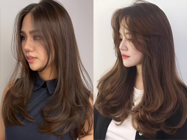 Tóc dài ngang lưng kết hợp uốn đuôi nhẹ là một trong những kiểu tóc Hàn Quốc trendy được ưa chuộng vì tính ứng dụng cao, dễ chăm sóc. Tóc dài vừa phải ngang lưng vô cùng nữ tính, thanh lịch, phù hợp với các phong cách đơn giản thường ngày. Bạn có thể chọn duỗi hơi nước phần chân và thân tóc, uốn sóng hoặc uốn cụp nhẹ phần đuôi để tăng thêm vẻ sang trọng. Đặc biệt nhuộm màu tóc nâu cho kiểu tóc này sẽ khiến bạn thêm phần sành điệu, quý phái.