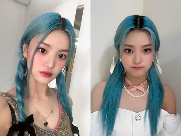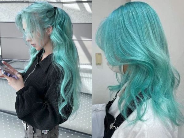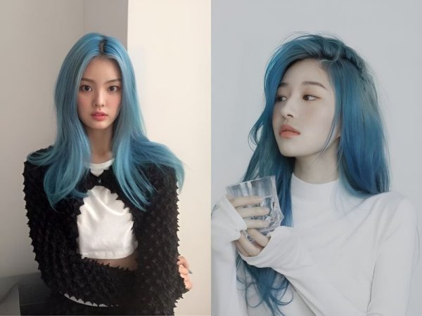 Bạn có thể chọn cách tết tóc hai bên kết hợp tông make up nhẹ nhàng để dung hòa độ cool của màu nhuộm (Nguồn: Aespa) Tóc màu xanh dương sáng dành cho những cô nàng cá tính, thời thượng (Nguồn: Aespa)Nhuộm xanh dương ngọc