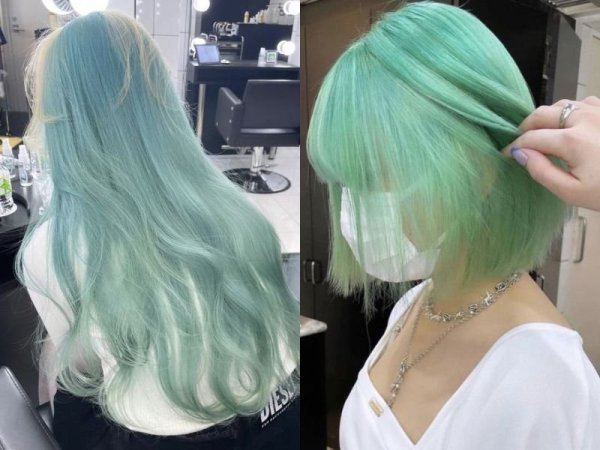 Kiểu tóc xanh ngọc vô cùng cá tính kèm theo chút nổi loạn. Màu tóc mang đến cho bạn vẻ ngoài trẻ trung và năng động đúng chuẩn cô nàng hiện đại. Vì có sắc độ khá sáng nên tóc xanh dương ngọc chỉ phù hợp bạn có làn da trắng. Nếu sở hữu làn da ngăm, bạn rất dễ bị chìm so với màu nhuộm.