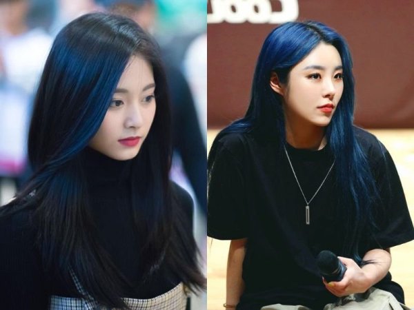 Tóc xanh truyền thống được lấy cảm hứng từ màu của đại dương (Nguồn: Wheein) Màu nhuộm được hội chị đẹp Hàn Quốc hết mực lăng xê bởi khả năng tôn da cực đỉnh (Nguồn: Twitter -Pinterest)Tóc xanh dương sương mù