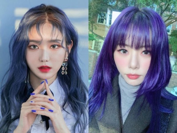 Màu nhuộm được các cô nàng cá tính, mạnh mẽ yêu thích (Nguồn: Tzuyu – Twice, Wheein) Mái tóc có công dụng tôn lên làn da trắng tuyệt vời (Nguồn: SHN48)Kiểu tóc xanh ánh tím