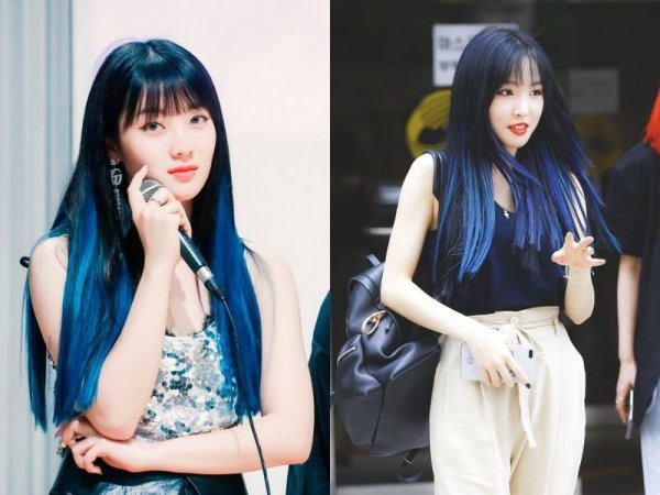 Nhuộm tóc ombre xanh dương sử dụng hiệu ứng chuyển màu đặc biệt nên cần sự hỗ trợ từ thợ lành nghề (Nguồn: Taeyeon – SNSD, Lucy) Kiểu tóc nhuộm thời thượng giúp bạn trở thành trung tâm của mọi ánh nhìn (Nguồn: Lucy – Weki Meki)Tóc highlight xanh dương