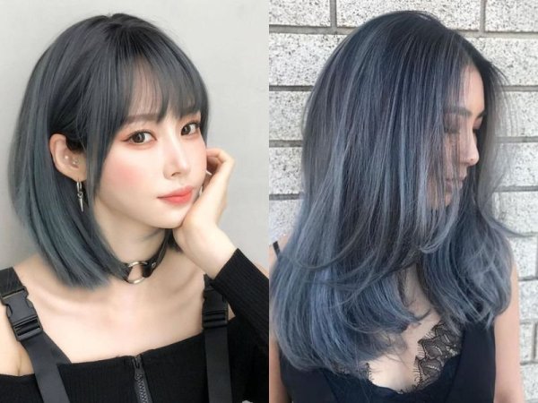 Tóc xanh dương khói mang đến diện mạo cực kỳ cuốn hút (Nguồn: VOH) Màu xanh khói pha một chút sắt xám dành cho những cô nàng theo phong cách tự do, phóng khoáng (Nguồn: kus0tt4r3 – Pinterest)Mẫu tóc xanh biển xám khói