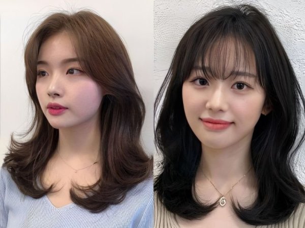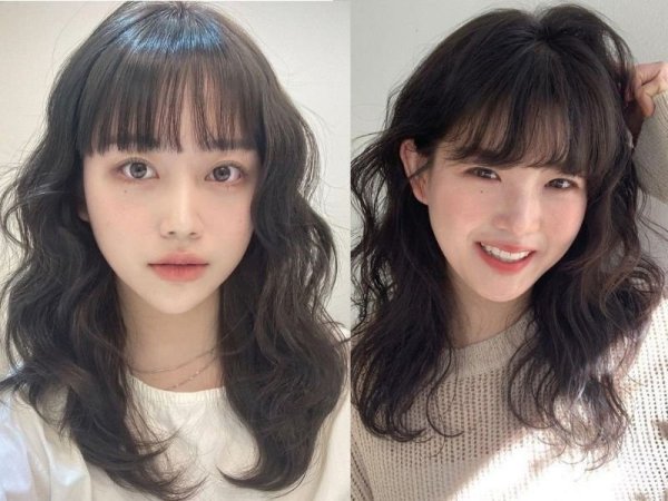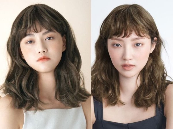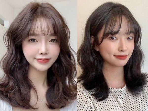 Tóc uốn ngang vai mái ngang trẻ trung và năng động (Nguồn: Kbeauty Addiction) Tóc uốn ngang vai mái ngang phù hợp với mọi dáng khuôn mặt (Nguồn: Chahong Official)Tóc ngang vai uốn phồng