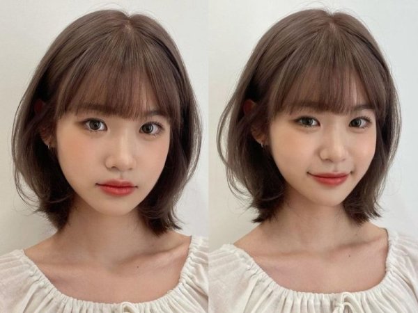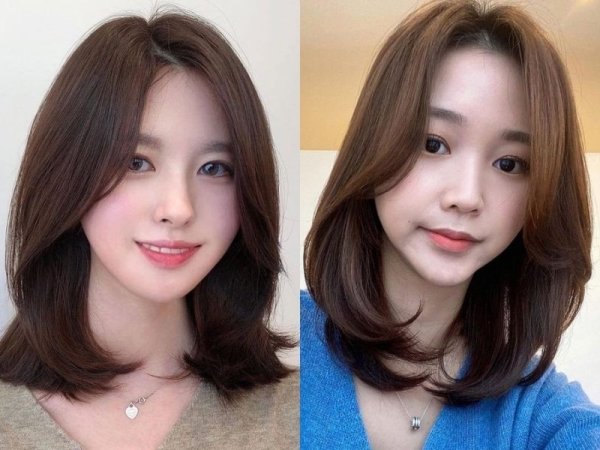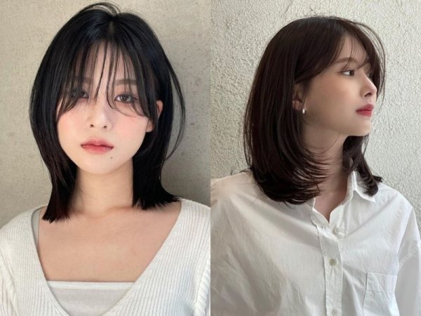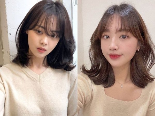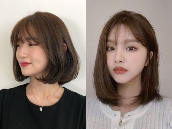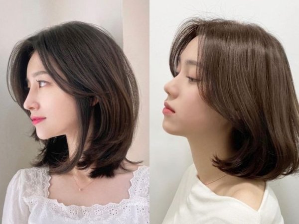Kiểu bob ngắn với mái dài hai bên là sự kết hợp tuyệt vời giúp che đi những khuyết điểm của khuôn mặt vuông góc cạnh (Nguồn: 하움 – Pinterest, ReviewNao – Pinterest)) Tóc mái dài hai bên giúp bạn tôn lên ngũ quan của mình (Nguồn: VOH – Pinterest, Yêu Trẻ)Tóc bob layer cho mặt vuông