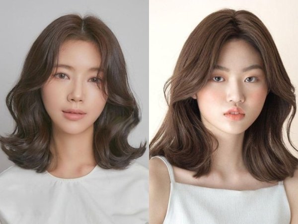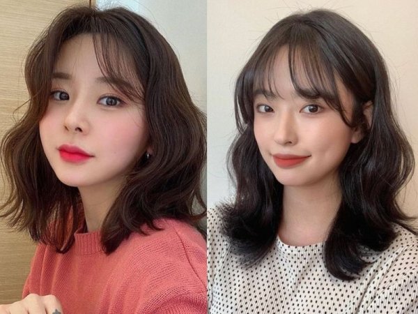 Mái bay giúp gương mặt vuông che đi phần gò má cao (Nguồn: among và 陶坤 – Pinterest) Tóc bob ngang vai uốn cụp kết hợp mái bay dài cho nư mặt vuông (Nguồn: chahong và among – Pinterest)Tóc bob ngắn uốn gợn sóng
