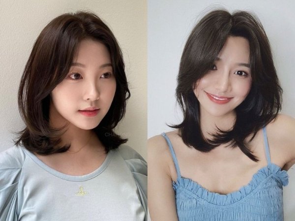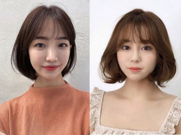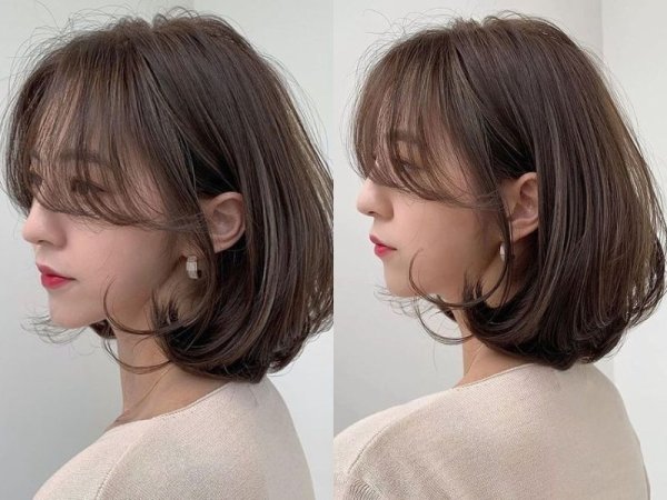 Tóc bob uốn đuôi vểnh cá tính (Nguồn: 하움 – Pinterest, miso12 – Pinterest) Tóc bob uốn đuôi vểnh giúp tôn lên đường nét trên gương mặt bạn (Nguồn: bluelatte, CHAHONG)Kiểu tóc bob mái dài hai bên