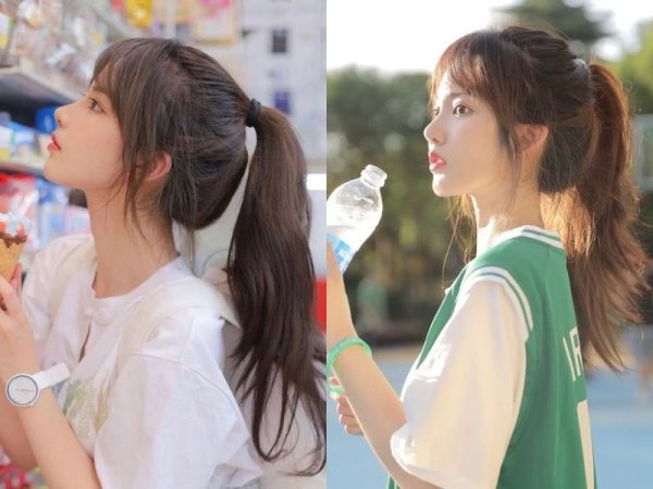 Tóc tết đuôi ngựa giúp các bạn nữ mặt vuông trong cá tính hơn (Nguồn: Fansite SOLarson) Kiểu buộc tóc cho mặt vuông tết tóc cột cao cho các hoạt động ngoài trời (Nguồn: Douyin id chuqing0522)Kiểu tóc buộc thấp với mái layer cho mặt vuông