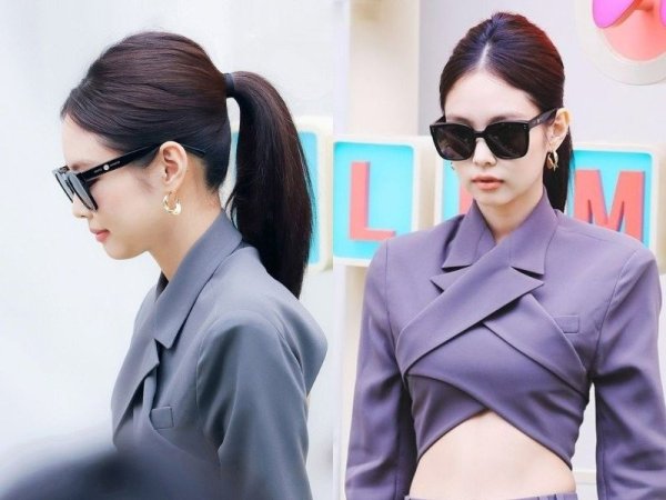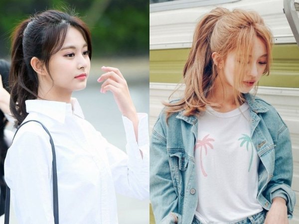 Tóc đuôi ngựa đánh phồng phần đầu giúp bạn phân tán sự chú ý cho gương mặt vuông (Nguồn: elle – Pinterest) Jennie đã từng thử diện kiểu tóc này trong một vài sự kiện (Nguồn: 로제 – Pinterest)Kiểu buộc tóc nửa vời cho mặt vuông