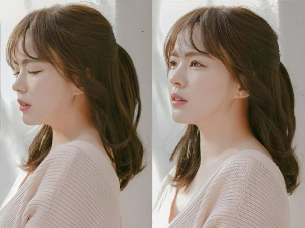 Kiểu buộc tóc đuôi ngựa tuy đơn giản nhưng tổng thể rất cá tính, phù hợp với gương mặt góc cạnh. (Nguồn: amp.voh.com.vn) Bạn nên kết hợp thêm tóc mái để che khuyết điểm tốt hơn (Nguồn: elle.vn)Kiểu buộc tóc nửa đầu cho mặt vuông