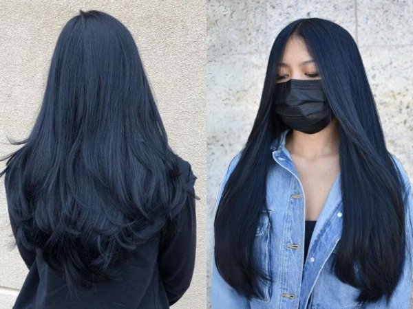 Tóc màu xanh khói đen đơn giản nhưng vẫn nổi bật, quyến rũ (Nguồn: Doo Hair Salon) Sự pha trộn hoàn hảo giữa 2 tông màu xanh và đen giúp tổng thể mái tóc thêm phần bí ẩn, cá tính (Nguồn: Breezy)Nhuộm tóc màu xanh khói xám