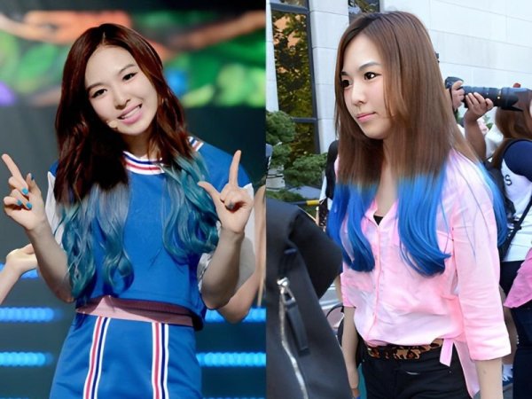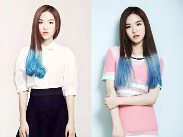 Hai lớp màu của tóc xanh khói dip dye được nhuộm hoàn toàn tách biệt (Nguồn: Newsen) Màu tóc xanh khói dip dye mang lại một hiệu ứng hoàn toàn khác so với ombre (Nguồn: twitter wendyday77)Tóc highlight xanh khói