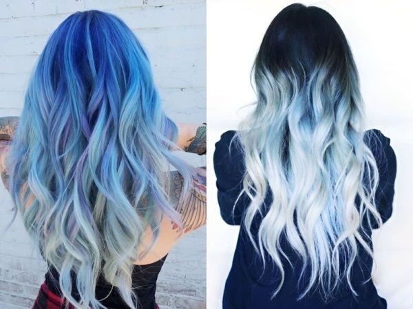Vẻ đẹp đầy ngọt ngào của kiểu tóc xanh khói sáng (Nguồn: Jordan) Sắc màu càng rực rỡ hơn khi có ánh sáng chiếu vào (Nguồn: Losirento)Tóc ombre xanh khói