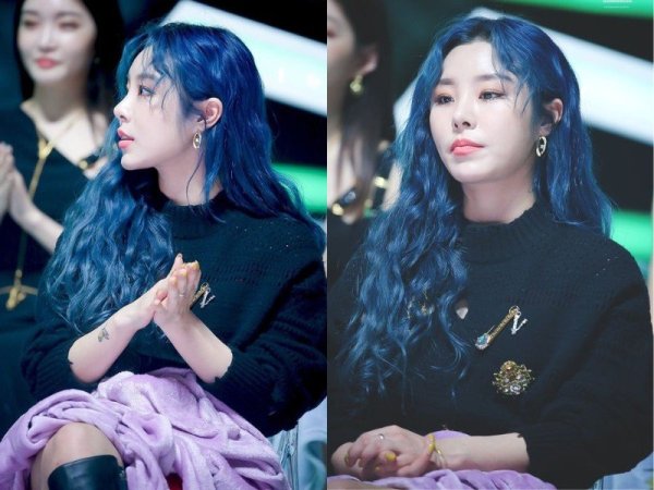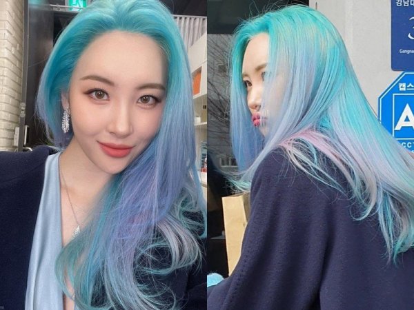 Tóc màu xanh khói thường phai màu rất nhanh (Nguồn: twitter @official_sunmi)Nhuộm xanh khói có cần tẩy tóc không?