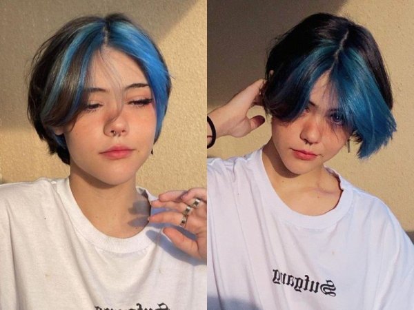 Tóc split mái xanh khói đầy cá tính và cool ngầu (Nguồn: Peachful) Một kiểu tóc đầy mới mẻ cho các bạn nữ muốn thay đổi phong cách (Nguồn: Myle)Cách chăm sóc tóc màu xanh khói nữ lâu phai
