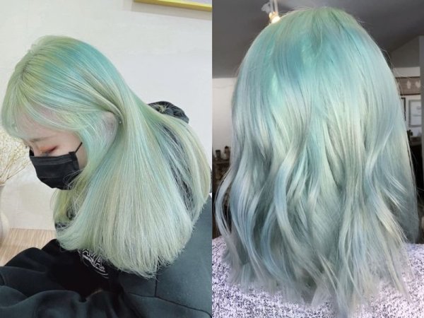 Ngược lại với xanh khói trầm, xanh khói sáng là một tông màu rất khó nhuộm. Vì những màu tóc càng sáng, càng nghiêng về pastel thì bạn sẽ càng phải tẩy nhiều. Nếu chưa từng tẩy tóc, có lẽ bạn sẽ cần tẩy ít nhất 2 lần để nền tóc đạt đến màu bạch kim thì màu nhuộm mới lên chuẩn được.