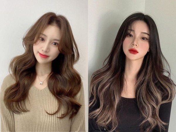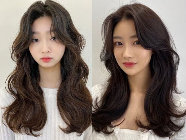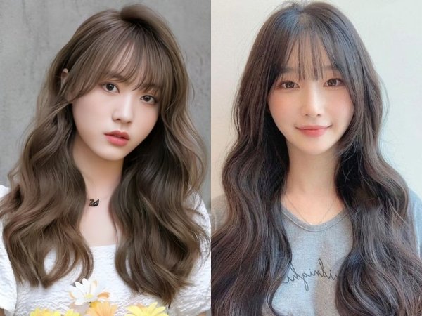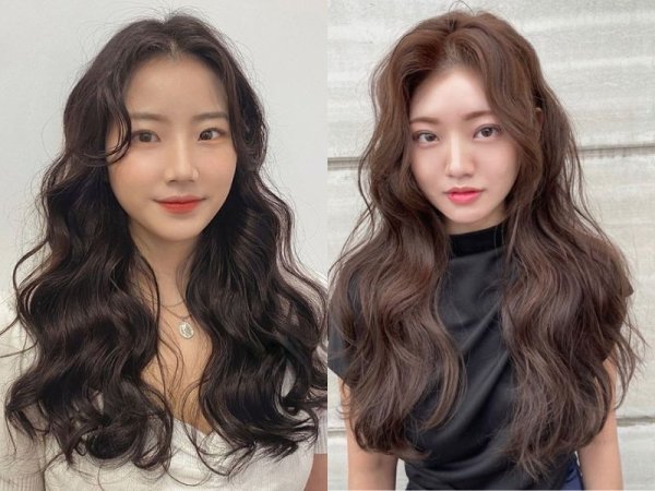 Uốn tóc xoăn lọn to màu sáng – phong cách của các idol Hàn Quốc (Nguồn: 다♡ và Hair Salon Lê Quân) Kiểu tóc xoăn gợn sóng Hàn Quốc giúp bạn nâng tầm nhan sắc (Nguồn: 하움 và VOH)Kiểu tóc xoăn lọn to tỉa layer