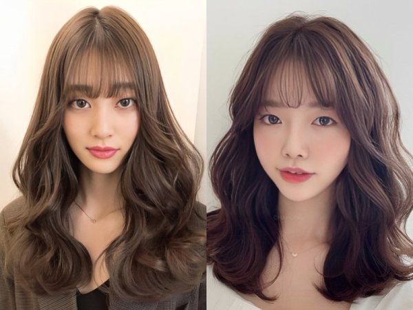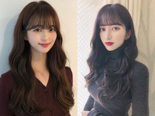 Kiểu tóc mái bằng và tóc lọn to là một sự kết hợp hoàn hảo giúp che khuyết điểm (Nguồn: Chahong Room) Tóc mái bằng uốn lọn to là “trợ thủ đắc lực” giúp che đi những phần khuyết điểm trên mặt (Nguồn: beauty.hotpepper.jp và Chahong Room)Kiểu tóc uốn lọn to gợn sóng