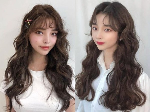 Kiểu uốn nhẹ này làm cho các sợi tóc xoăn lọn to trở nên bồng bềnh (Nguồn: beaudy.vn và Chahong) Tóc xoăn gợn sóng tạo điểm nhấn cho các cô nàng nhẹ nhàng (Nguồn: Chahong)Kiểu tóc xoăn gợn sóng Hàn Quốc