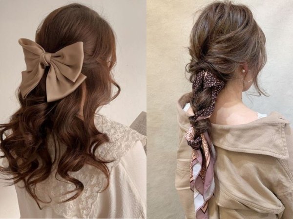 – Pinterest và yan.vn) Kết hợp nơ và ruy băng để tạo điểm nhấn cho tóc (Nguồn: Salma༊ ~ Lets fall ‘n ART ! và phongcachlamdep.com)