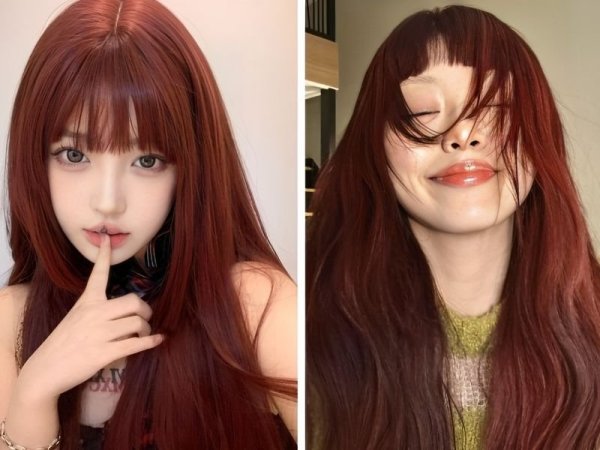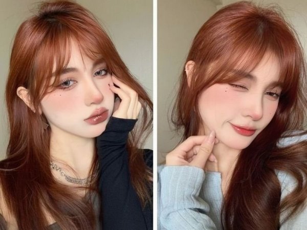 Nhuộm tóc màu đỏ cam trầm vừa giúp nàng tôn da vừa dễ dàng chăm sóc (Nguồn: voh, Beaudy.vn) Kiểu tóc này giúp nàng tăng thêm phần trẻ trung và năng động (Nguồn: – ℒyamzoca ‘ -Pinterest, Douyin)Tóc nhuộm màu đỏ cam cà rốt