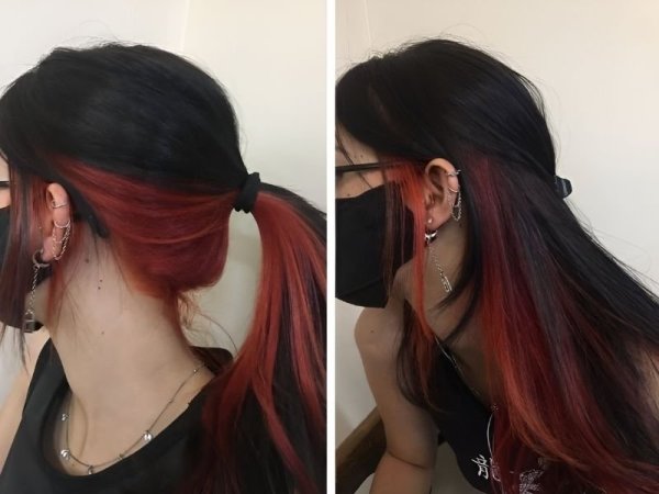 Màu tóc đỏ cam nhuộm highlight là một màu tóc mới lạ góp phần tạo điểm nhấn cho mái tóc giúp ngoại hình của bạn thêm phần trẻ trung và năng động. Đặc biệt hơn, với sự kết hợp của các màu đối lập như đỏ cam và đen giúp tóc nổi bật hơn. Công thức nhuộm màu đỏ cam highlight cũng không quá phức tạp, tùy sở thích mà bạn có thể highlight nhiều hoặc ít đều mang đến vẻ đẹp sang trọng và tươi trẻ, đặc biệt là trong các buổi tiệc tối. Tóc đỏ cam highlight sẽ lên màu đẹp với nền tóc có gam màu màu trầm, vậy nên bạn có thể kết hợp highlight đỏ cam với nền tóc đen để mái tóc của mình cuốn hút hơn nhé!