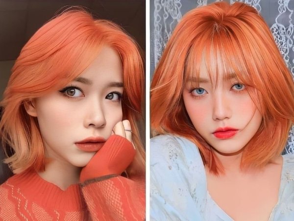 Tóc đỏ cam trẻ trung và nổi bật (Nguồn: 𝓢𝓪𝓻𝓪𝓱-Pinterest, VOH) Màu nhuộm đỏ cam giúp làn da của bạn trông sáng và nổi bật hơn rất nhiều (Nguồn: 다♡-Pinterest, Xiaohongshu)Tóc màu đỏ cam sáng