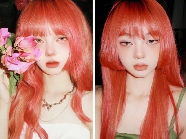 Với gam màu nhẹ nhàng hơn tóc đỏ cam, đây là gam màu thích hợp cho các cô nàng bánh bèo, nữ tính. Nhuộm tóc màu đỏ cam ánh hồng là sự pha trộn giữa màu đỏ cam nổi bật và sắc hồng nhẹ nhàng tạo nên màu tóc nhuộm vừa mới mẻ vừa trendy. Hơn nữa, màu đỏ cam ánh hồng không hề kén da và phù hơp hầu hết phong cách trang điểm. Dù cho bạn thích phong cách bánh bèo hay cá tính màu tóc này đều giúp bạn trẻ trung và sành điệu hơn.