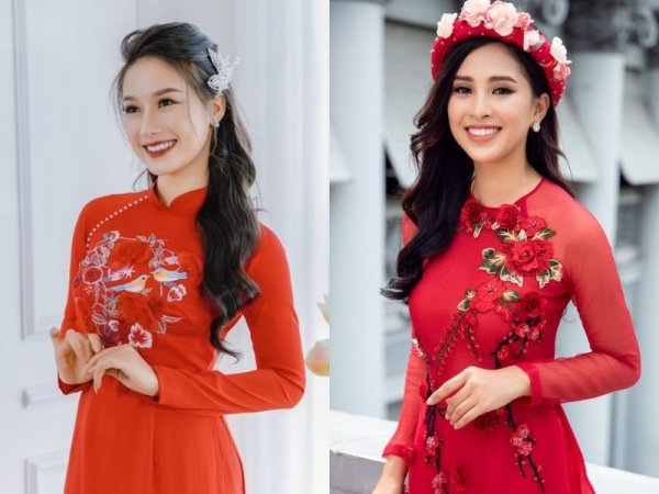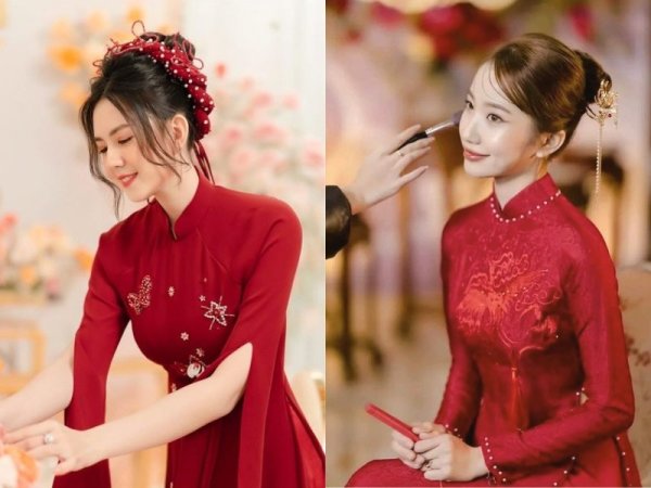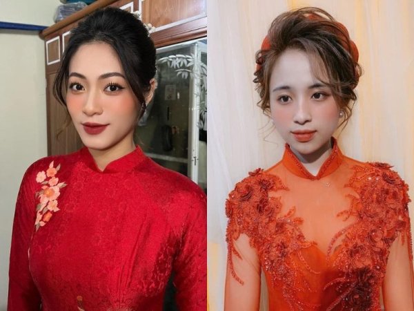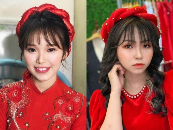 Tóc nhuộm có sắc ấm như đỏ, nâu sáng sẽ rất phù hợp khi cô dâu diện áo dài màu đỏ (Nguồn: Cường Trần Chang Nguyễn – Pinterest, hnglittle19 – Pinterest) Những màu có tông lạnh, trầm sẽ rất phù hợp với trang phục áo dài cưới trắng (Nguồn: Xoài Non Official – Facebook, senlotuscute – Pinterest)Cách dưỡng tóc trước ngày cưới