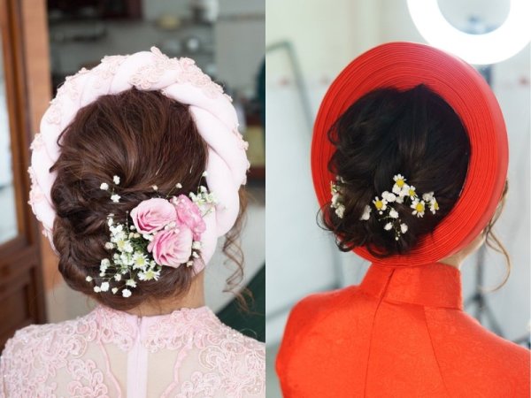 Tóc cô dâu cài hoa trong áo dài cưới đỏ vô cùng duyên dáng, nổi bật (Nguồn: lavaha.vn) Kiểu búi thấp cài hoa kết hợp áo dài cưới trắng tạo nên vẻ đẹp nhẹ nhàng, duyên dáng cho nàng dâu (Nguồn: lavaha.vn)Một số câu hỏi thường gặp