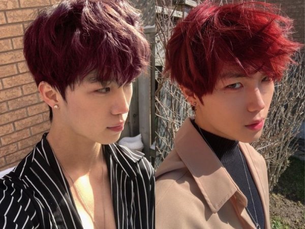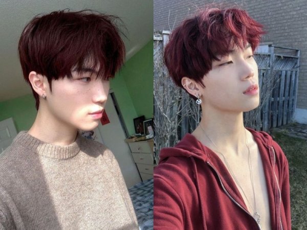 Nhuộm tóc màu đỏ mận giúp tạo thiện cảm với người đối diện (Nguồn: kenh14.vn và wannamay) Đỏ mận là màu tóc được khá nhiều các bạn giới trẻ ưa chuộng (Nguồn: Minhyun’sbae – Pinterest)Nhuộm tóc màu nâu tây ánh đỏ