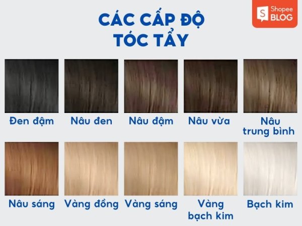 10 cấp độ tóc tẩy bạn có thể tham khảo (Nguồn: Shopee Blog)Những dụng cụ cần chuẩn bị khi tẩy tóc